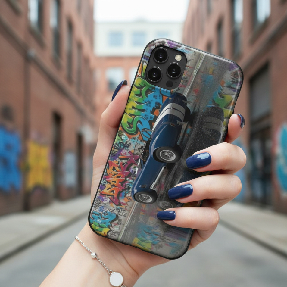 Discover our unique phone cases designed for car lovers and street art enthusiasts. Featuring a striking combination of luxury sports cars and colorful graffiti, these cases deliver a bold, stylish look that makes your phone stand out.