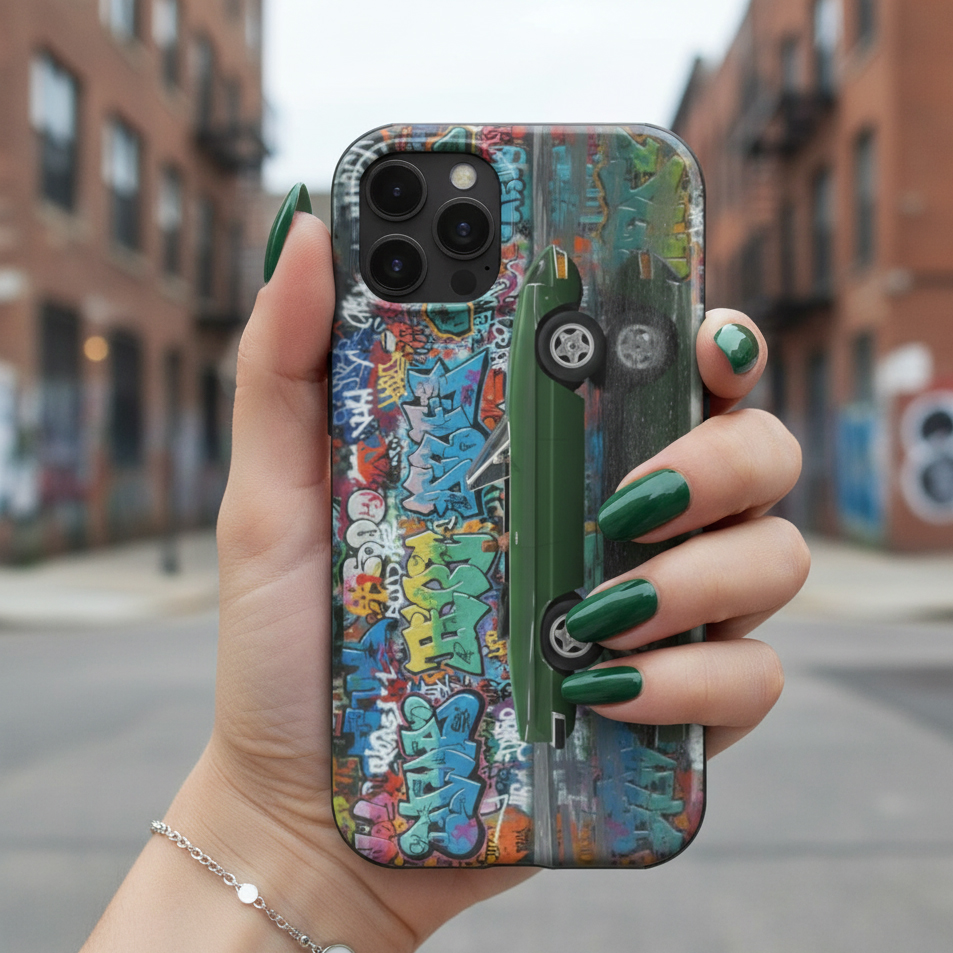 Discover our unique phone cases designed for car lovers and street art enthusiasts. Featuring a striking combination of luxury sports cars and colorful graffiti, these cases deliver a bold, stylish look that makes your phone stand out.