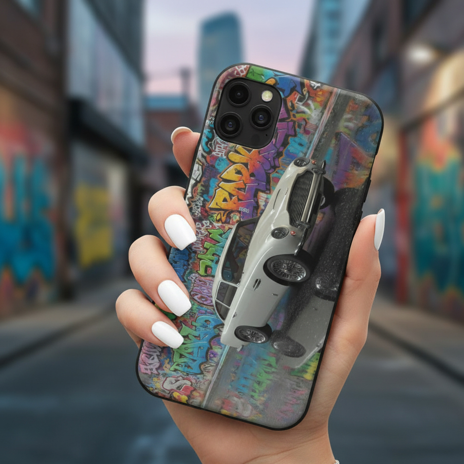 Discover our unique phone cases designed for car lovers and street art enthusiasts. Featuring a striking combination of luxury sports cars and colorful graffiti, these cases deliver a bold, stylish look that makes your phone stand out.