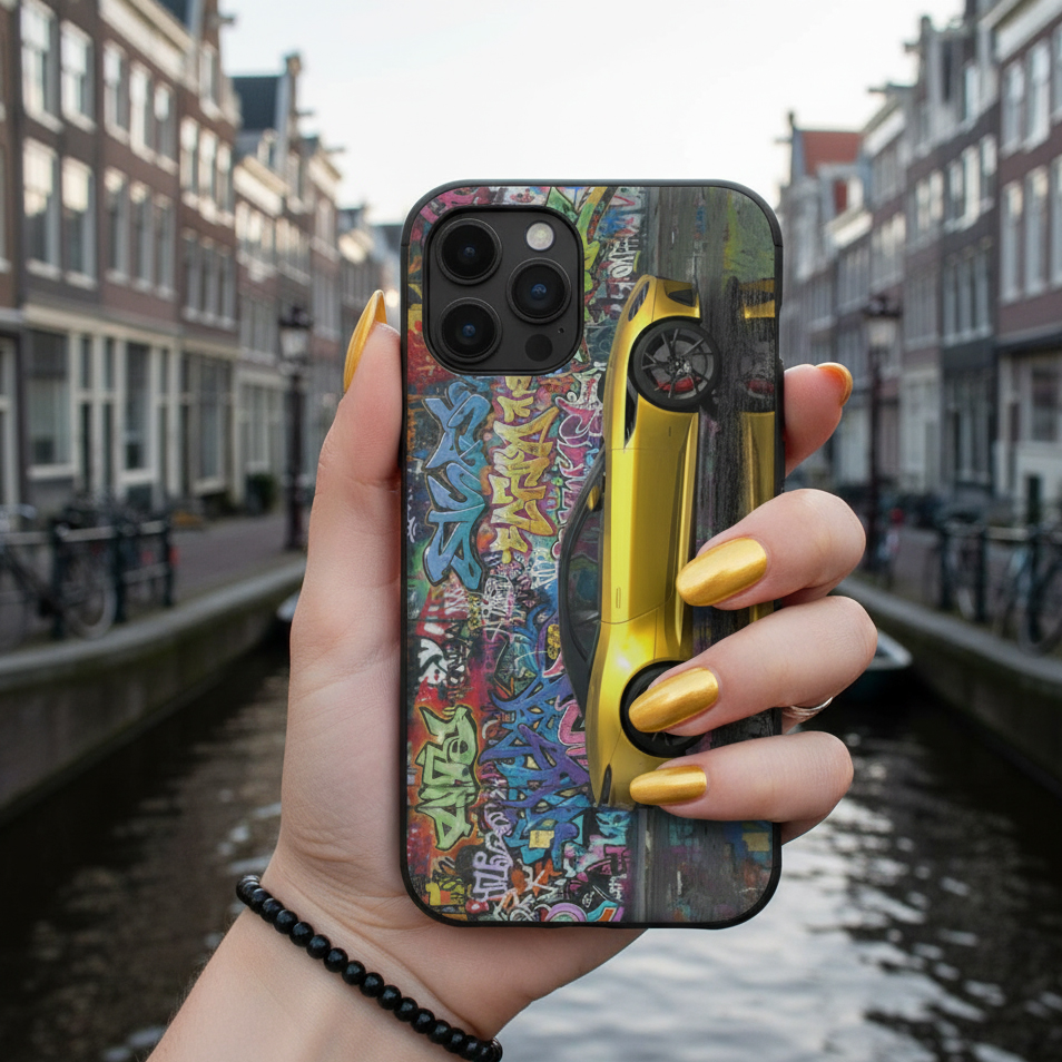 Discover our unique phone cases designed for car lovers and street art enthusiasts. Featuring a striking combination of luxury sports cars and colorful graffiti, these cases deliver a bold, stylish look that makes your phone stand out.