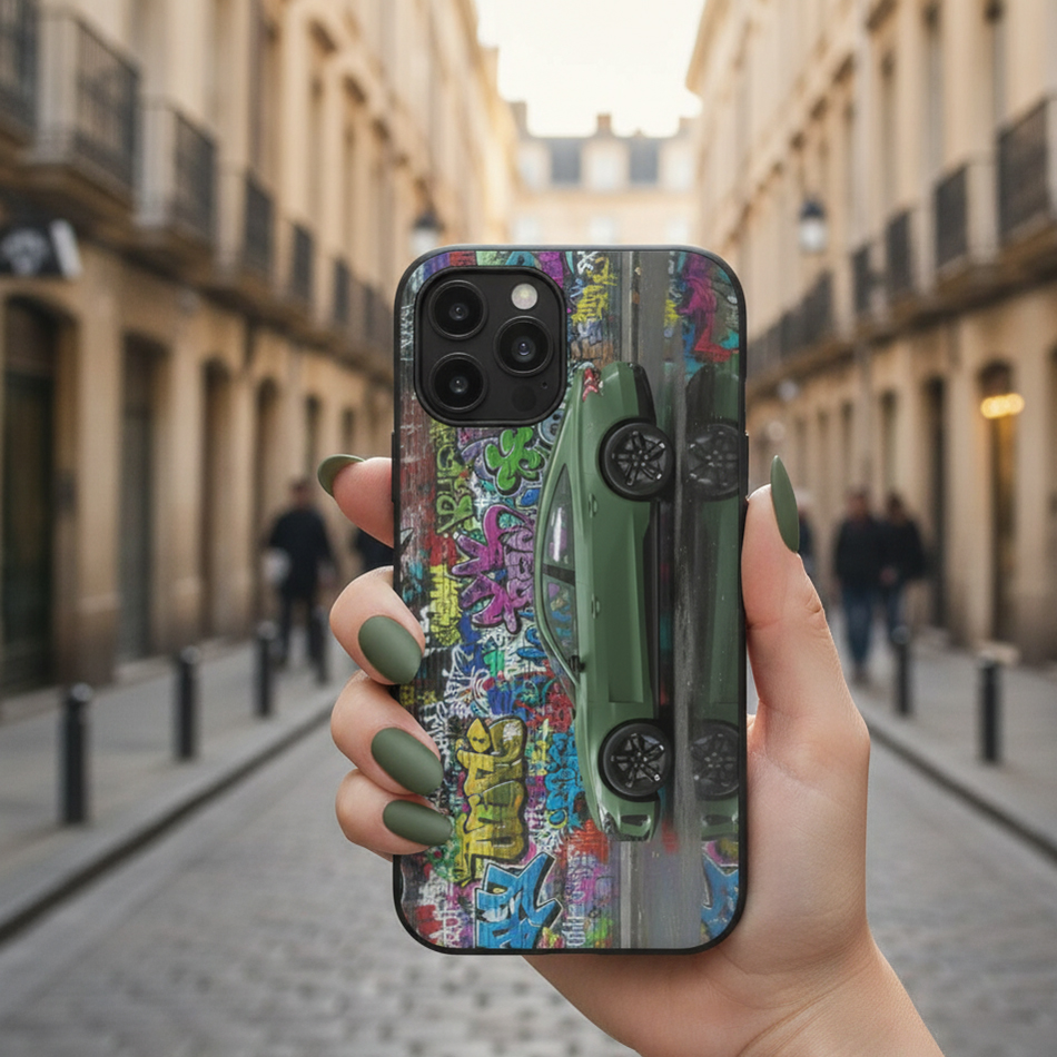 Discover our unique phone cases designed for car lovers and street art enthusiasts. Featuring a striking combination of luxury sports cars and colorful graffiti, these cases deliver a bold, stylish look that makes your phone stand out.