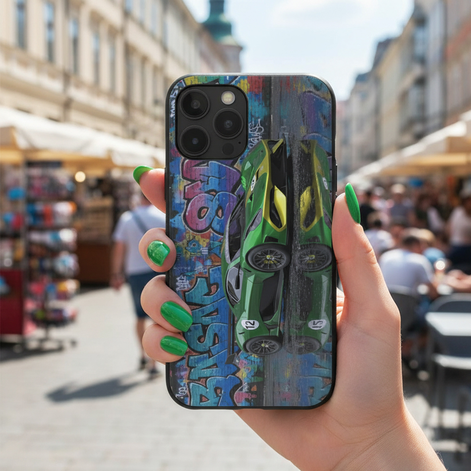 Discover our unique phone cases designed for car lovers and street art enthusiasts. Featuring a striking combination of luxury sports cars and colorful graffiti, these cases deliver a bold, stylish look that makes your phone stand out.