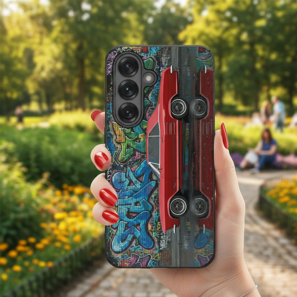 Discover our unique phone cases designed for car lovers and street art enthusiasts. Featuring a striking combination of luxury sports cars and colorful graffiti, these cases deliver a bold, stylish look that makes your phone stand out.