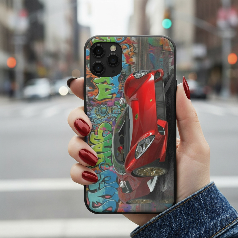 Discover our unique phone cases designed for car lovers and street art enthusiasts. Featuring a striking combination of luxury sports cars and colorful graffiti, these cases deliver a bold, stylish look that makes your phone stand out.