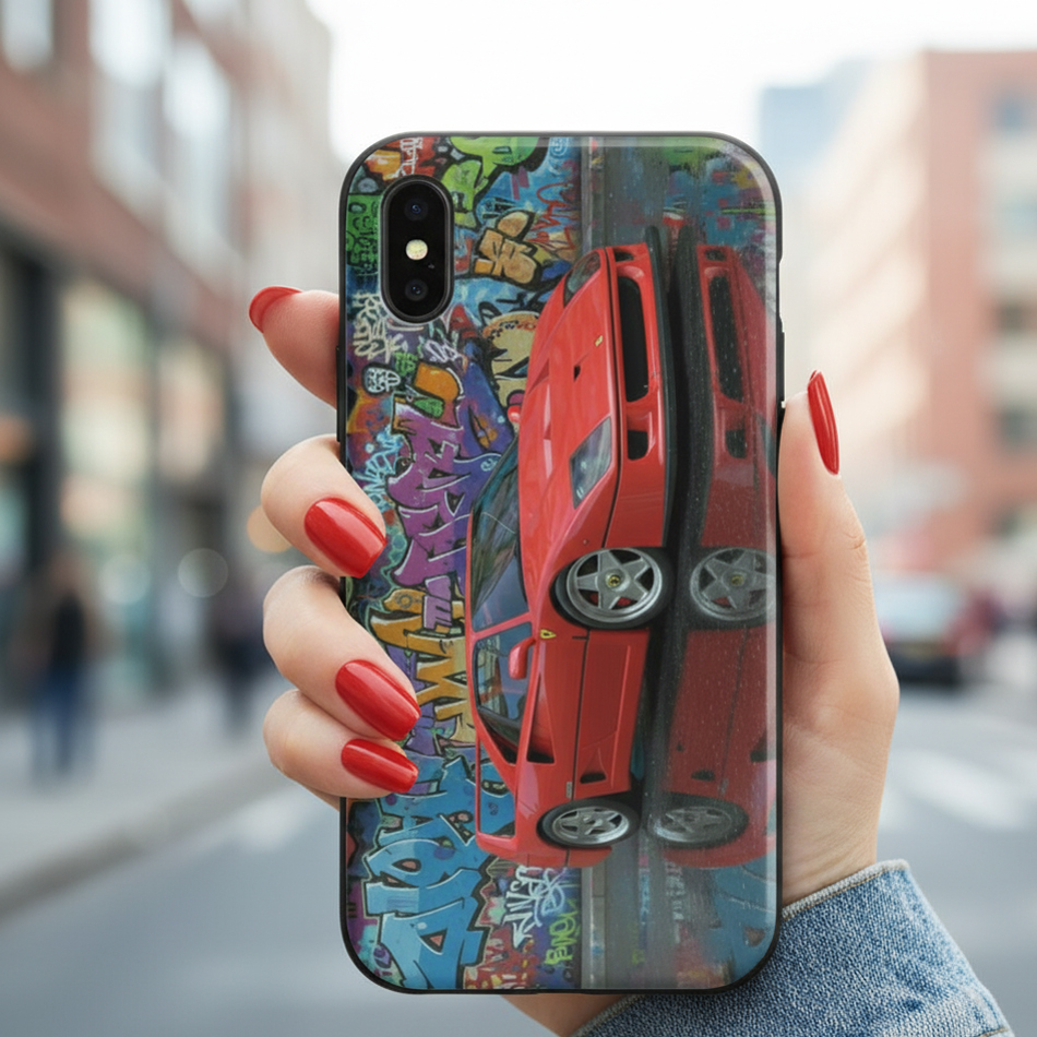 Discover our unique phone cases designed for car lovers and street art enthusiasts. Featuring a striking combination of luxury sports cars and colorful graffiti, these cases deliver a bold, stylish look that makes your phone stand out.