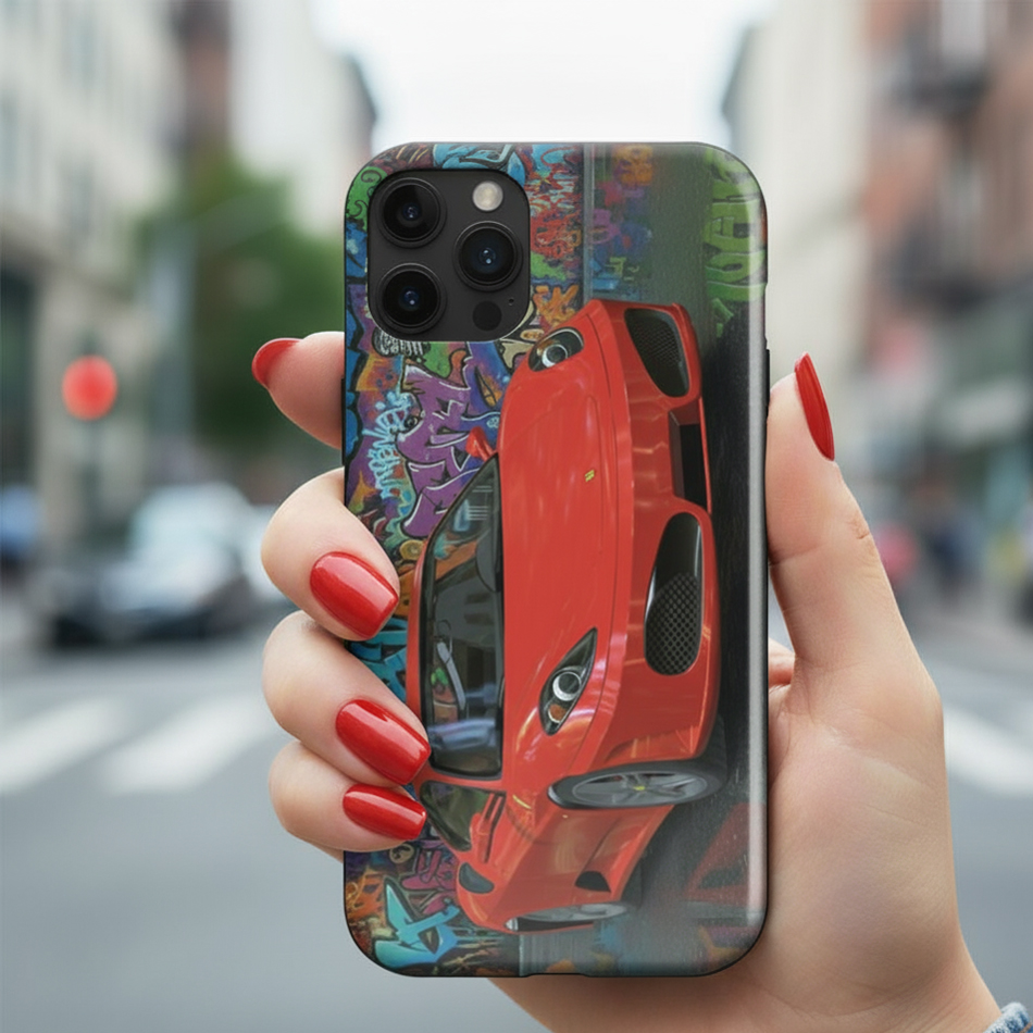 Discover our unique phone cases designed for car lovers and street art enthusiasts. Featuring a striking combination of luxury sports cars and colorful graffiti, these cases deliver a bold, stylish look that makes your phone stand out.