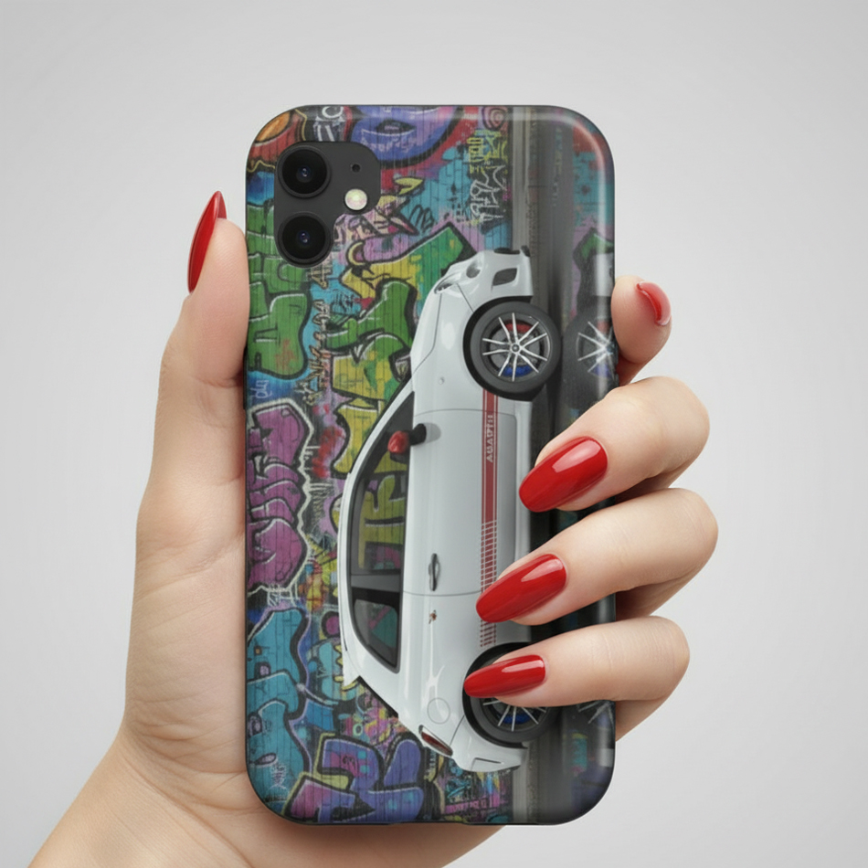 Discover our unique phone cases designed for car lovers and street art enthusiasts. Featuring a striking combination of luxury sports cars and colorful graffiti, these cases deliver a bold, stylish look that makes your phone stand out.
