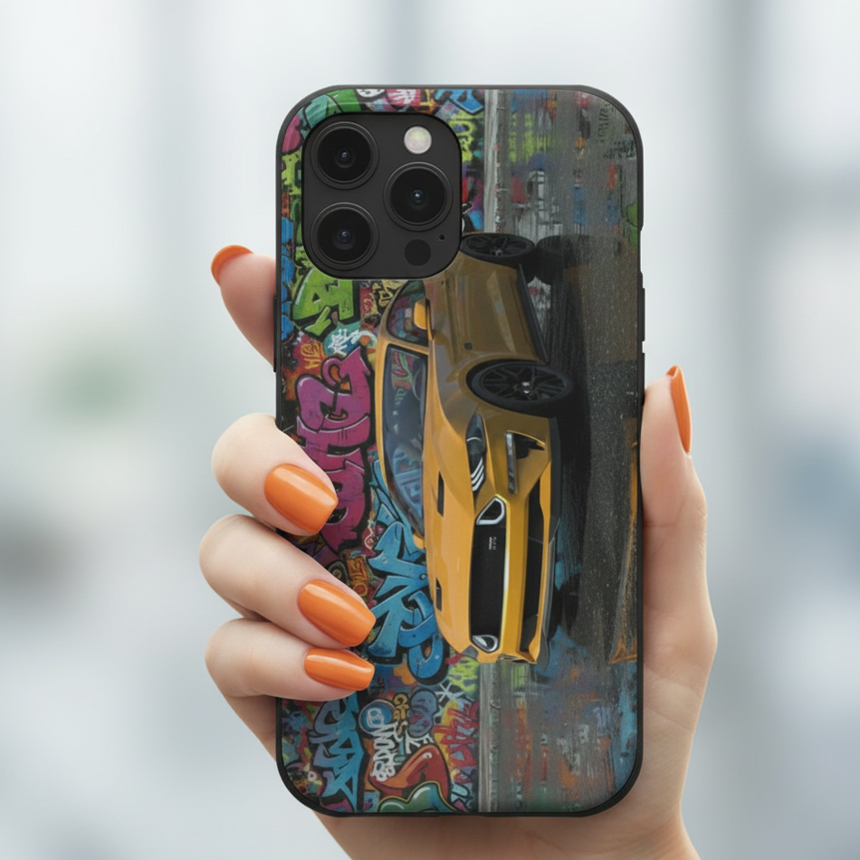 Discover our unique phone cases designed for car lovers and street art enthusiasts. Featuring a striking combination of luxury sports cars and colorful graffiti, these cases deliver a bold, stylish look that makes your phone stand out.
