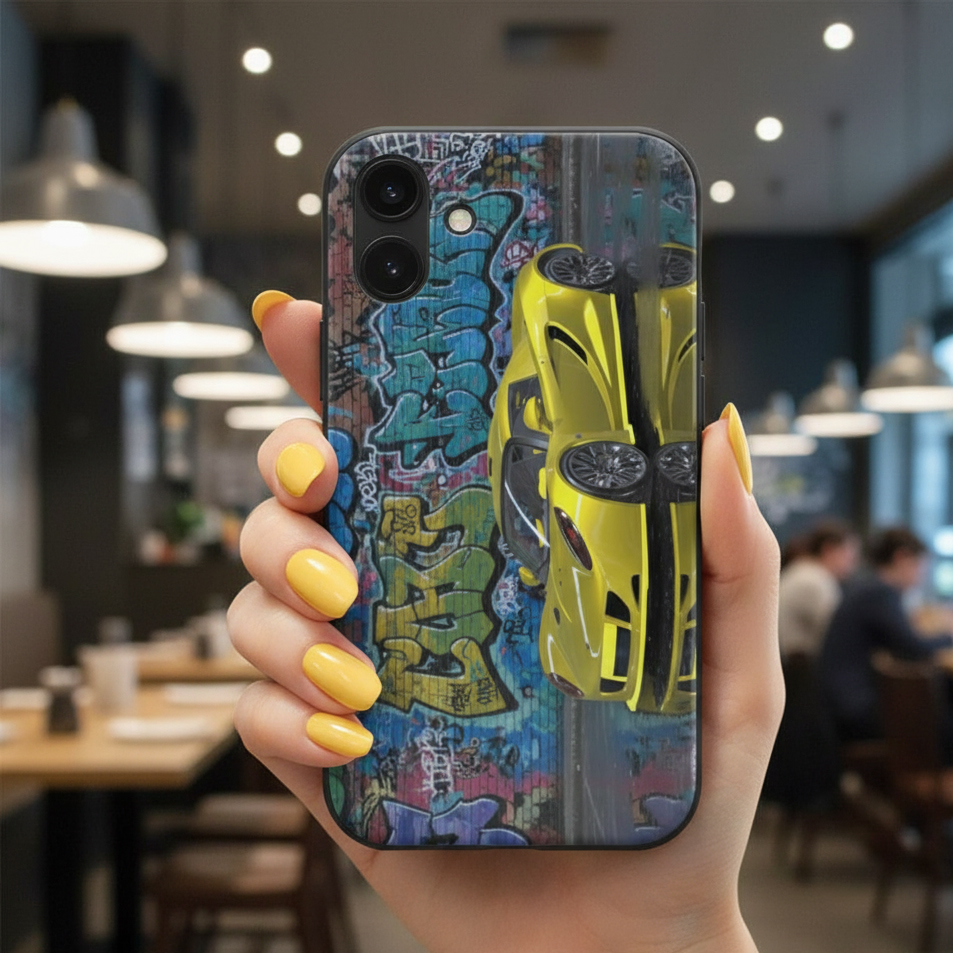 Discover our unique phone cases designed for car lovers and street art enthusiasts. Featuring a striking combination of luxury sports cars and colorful graffiti, these cases deliver a bold, stylish look that makes your phone stand out.