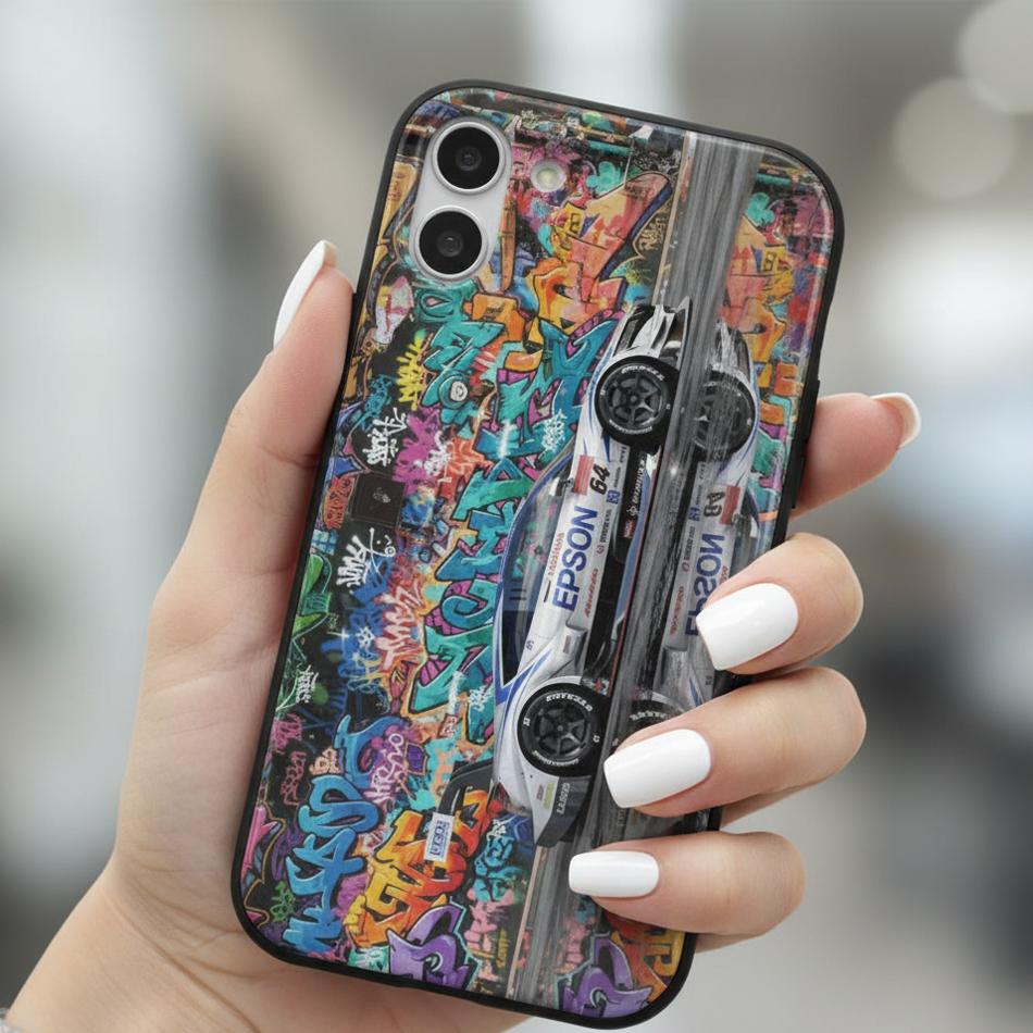 Discover our unique phone cases designed for car lovers and street art enthusiasts. Featuring a striking combination of luxury sports cars and colorful graffiti, these cases deliver a bold, stylish look that makes your phone stand out.
