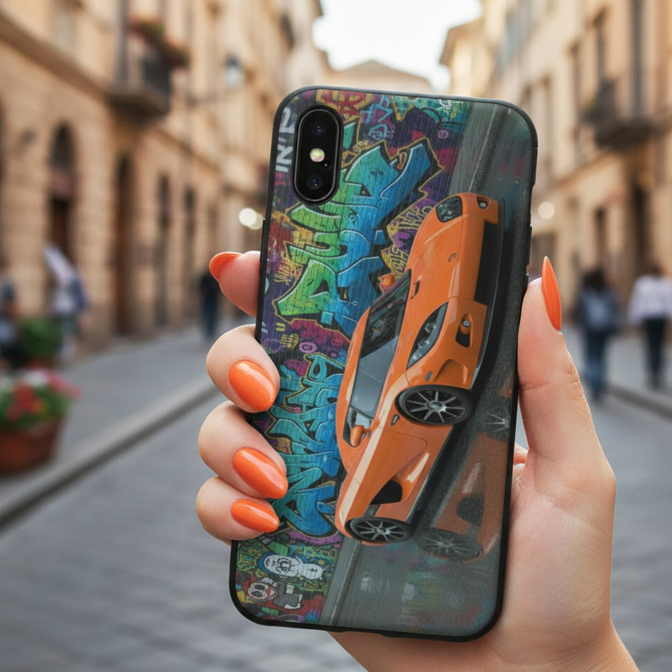 Discover our unique phone cases designed for car lovers and street art enthusiasts. Featuring a striking combination of luxury sports cars and colorful graffiti, these cases deliver a bold, stylish look that makes your phone stand out.