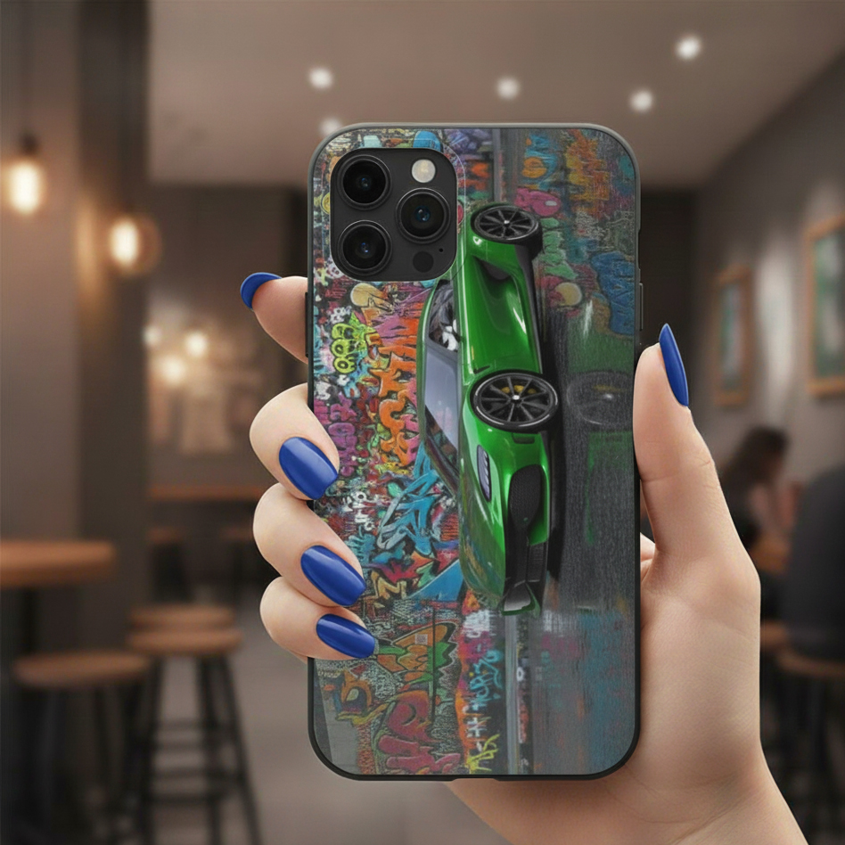 Discover our unique phone cases designed for car lovers and street art enthusiasts. Featuring a striking combination of luxury sports cars and colorful graffiti, these cases deliver a bold, stylish look that makes your phone stand out.