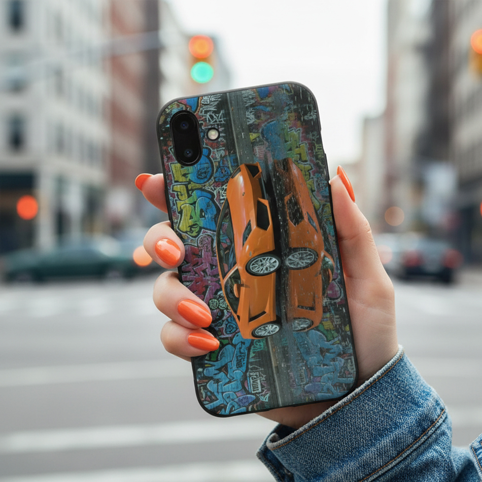 Discover our unique phone cases designed for car lovers and street art enthusiasts. Featuring a striking combination of luxury sports cars and colorful graffiti, these cases deliver a bold, stylish look that makes your phone stand out.