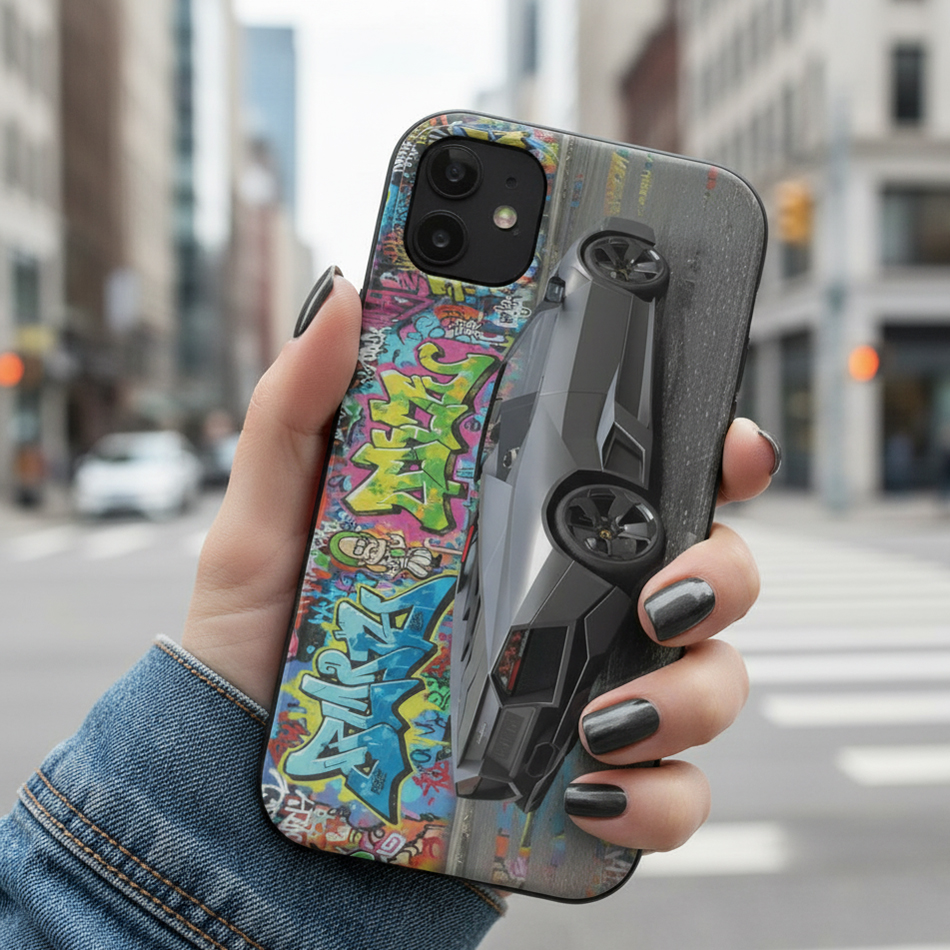 Discover our unique phone cases designed for car lovers and street art enthusiasts. Featuring a striking combination of luxury sports cars and colorful graffiti, these cases deliver a bold, stylish look that makes your phone stand out.