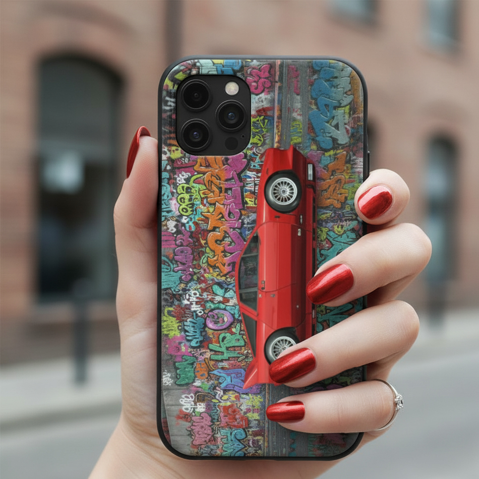 Discover our unique phone cases designed for car lovers and street art enthusiasts. Featuring a striking combination of luxury sports cars and colorful graffiti, these cases deliver a bold, stylish look that makes your phone stand out.