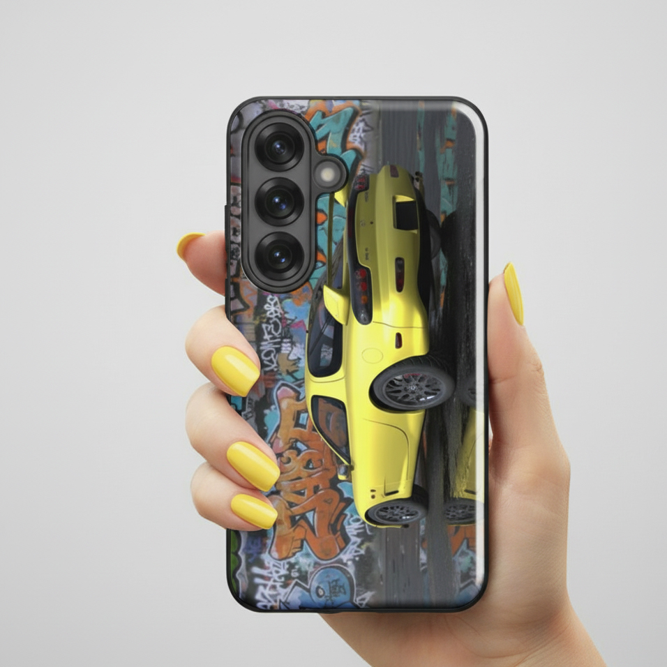 Discover our unique phone cases designed for car lovers and street art enthusiasts. Featuring a striking combination of luxury sports cars and colorful graffiti, these cases deliver a bold, stylish look that makes your phone stand out.