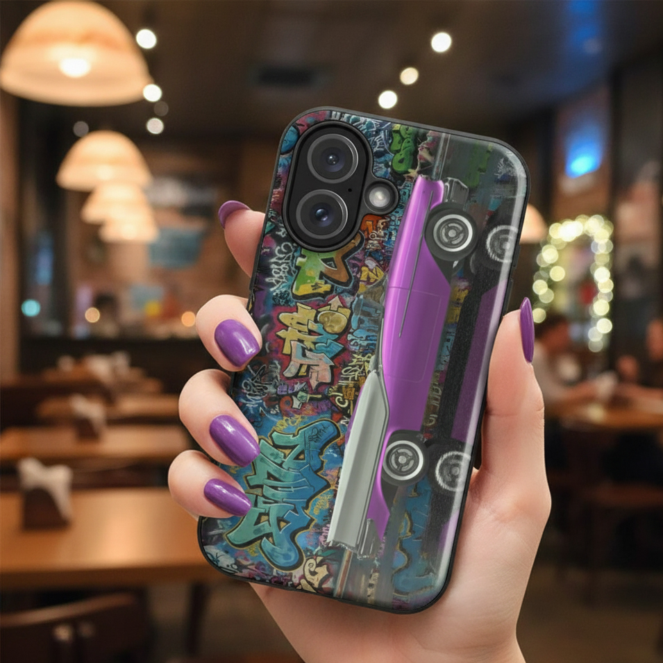 Discover our unique phone cases designed for car lovers and street art enthusiasts. Featuring a striking combination of luxury sports cars and colorful graffiti, these cases deliver a bold, stylish look that makes your phone stand out.