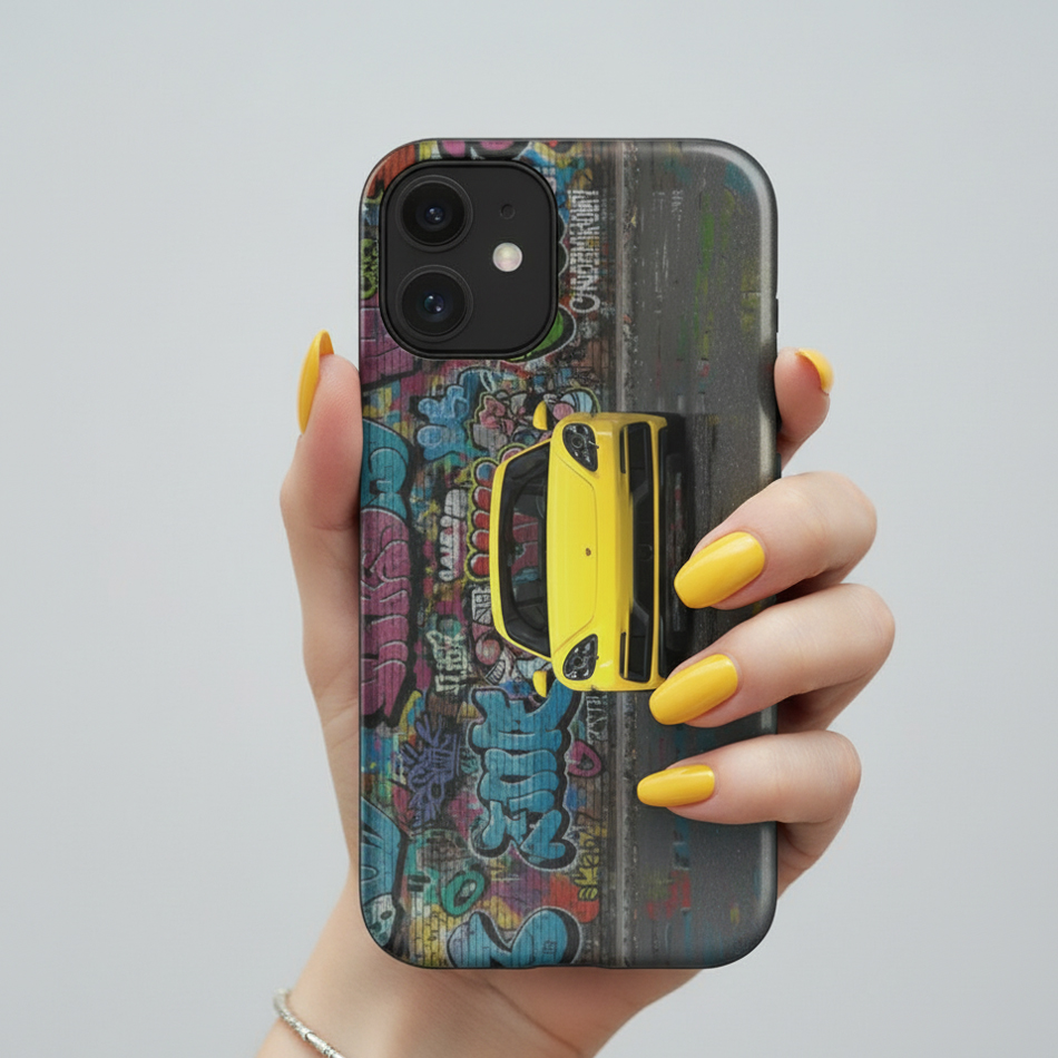 Discover our unique phone cases designed for car lovers and street art enthusiasts. Featuring a striking combination of luxury sports cars and colorful graffiti, these cases deliver a bold, stylish look that makes your phone stand out.