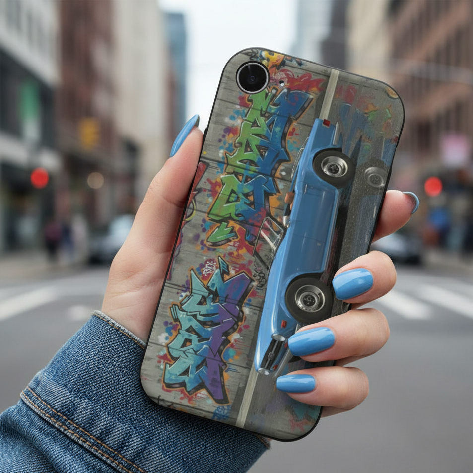Discover our unique phone cases designed for car lovers and street art enthusiasts. Featuring a striking combination of luxury sports cars and colorful graffiti, these cases deliver a bold, stylish look that makes your phone stand out.